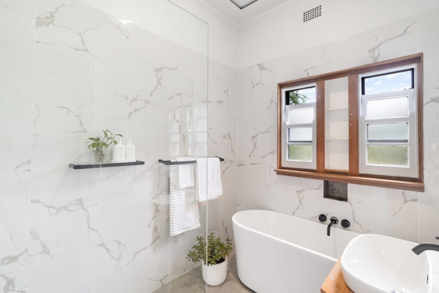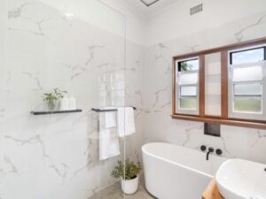 • Renovated bathroom with a freestanding bath